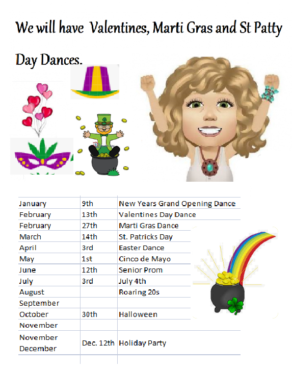 Valentines, Marti Gras and St Patrick Day Dances